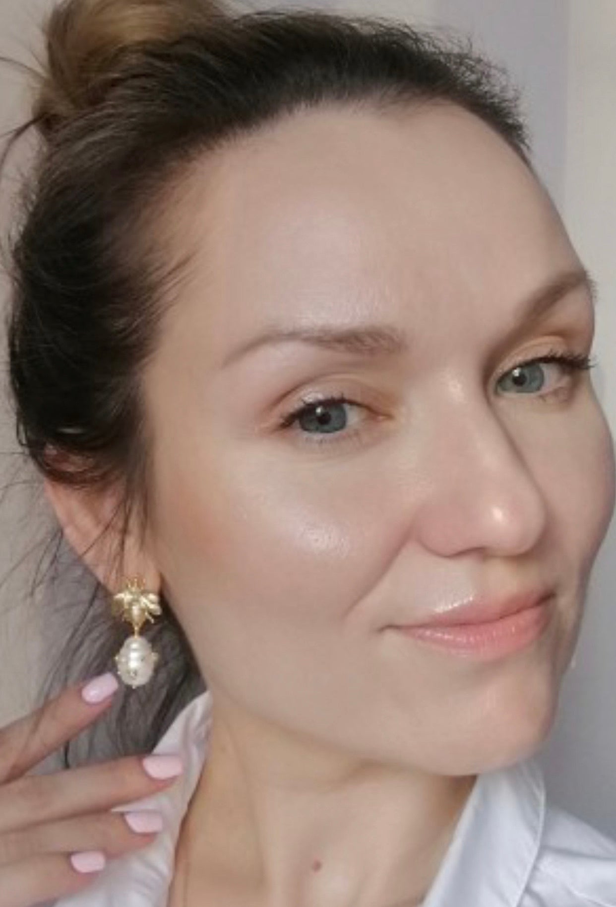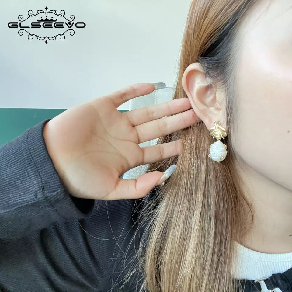 Gorgeous freshwater Pearl earrings with gold bee studs.