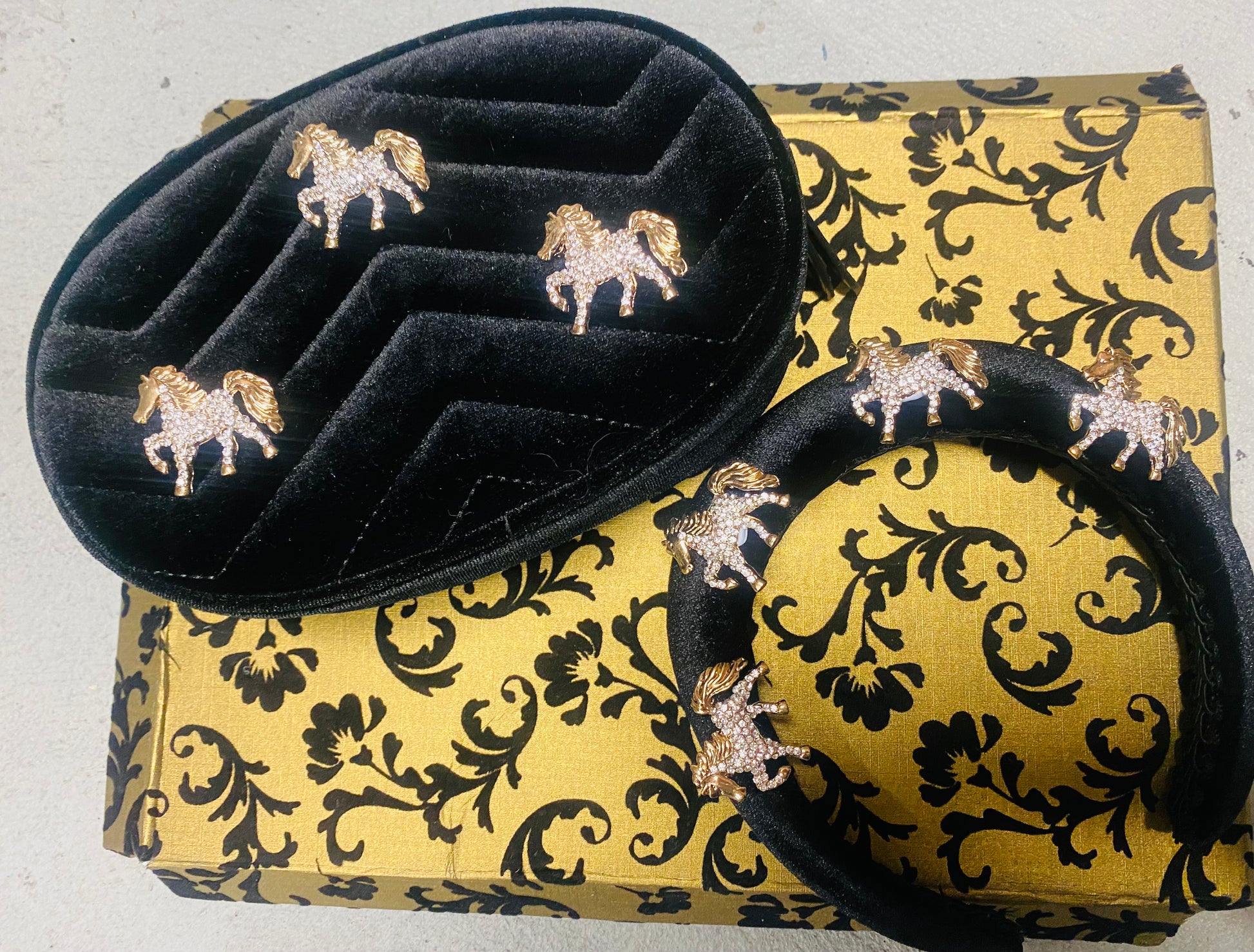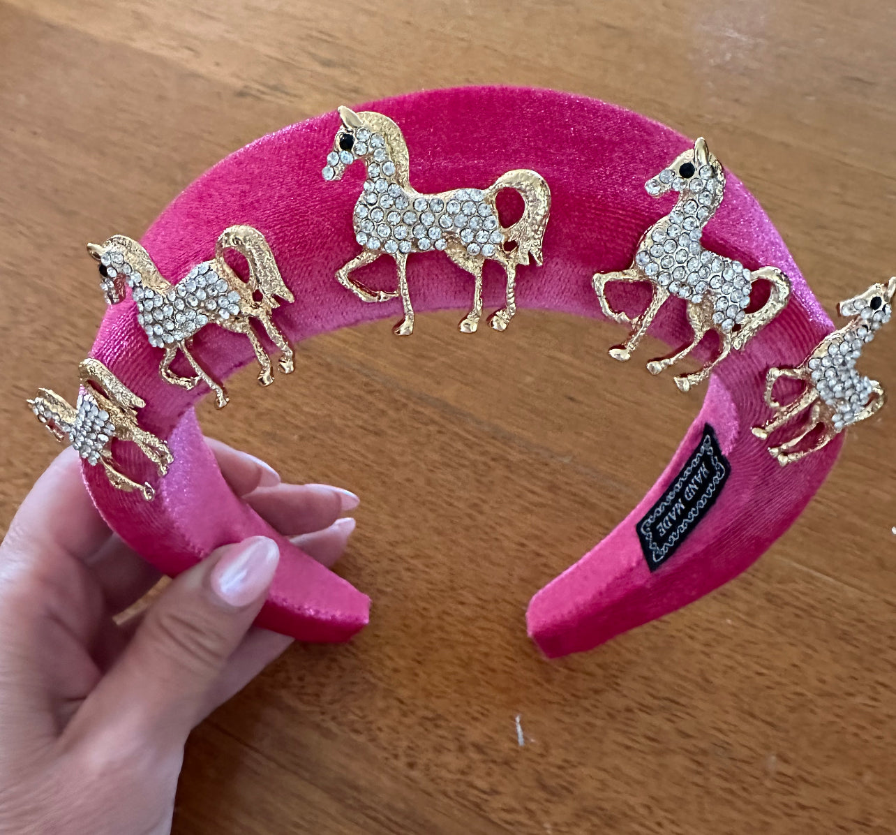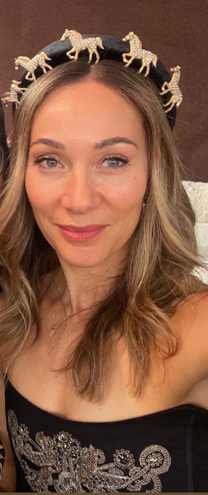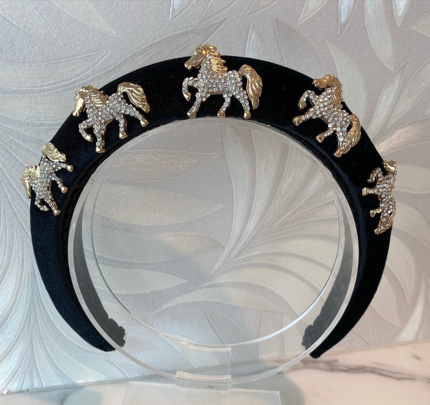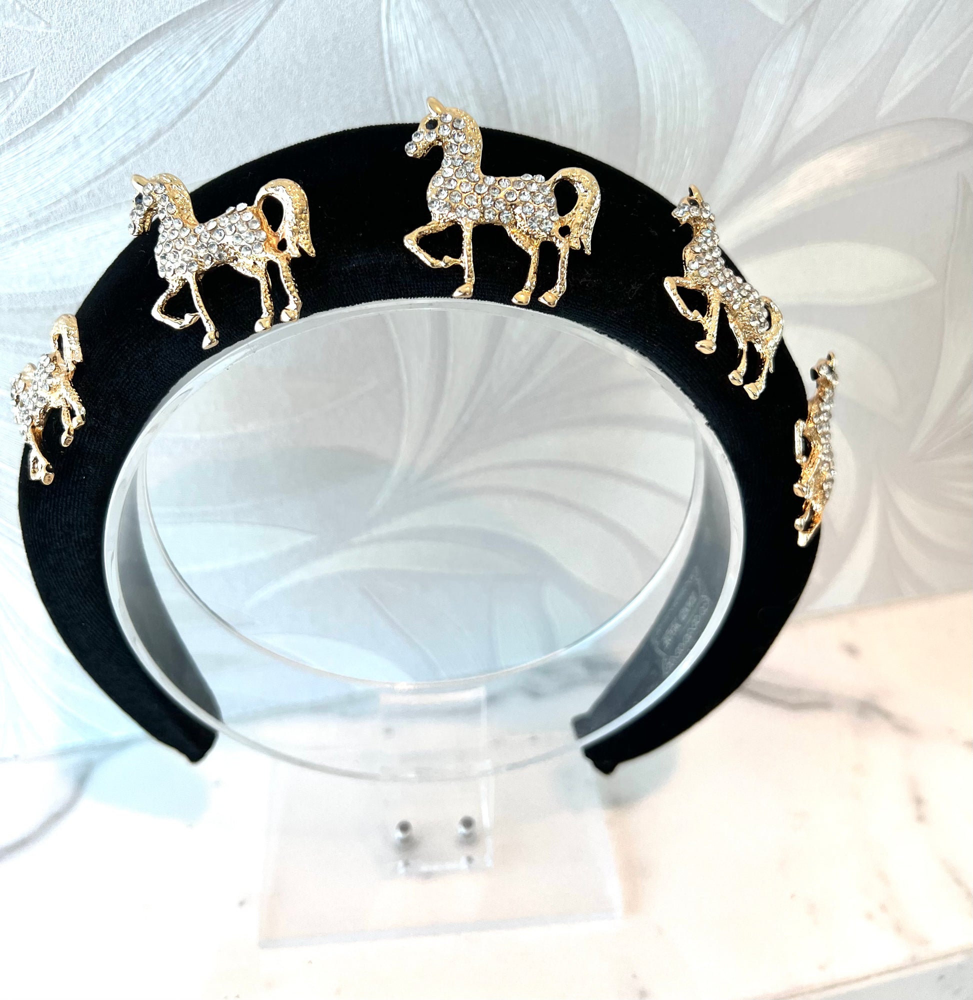 Truly a statement piece, this headband will be a showstopper at any Spring Racing event with its crystal horse embellishments.